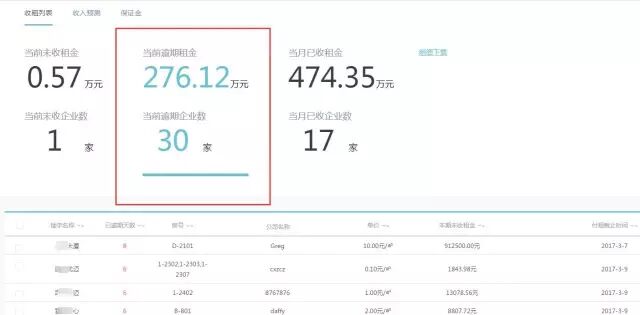 用一个“收租列表”,就能看清楚一栋楼所有的租金收取情况。而且哪些企业已经逾期未缴租了,都能拉出具体的合同看明细,截止到不同的时间段,还差多少没结清,不需要问任何人,通过这一个列表就搞定了。