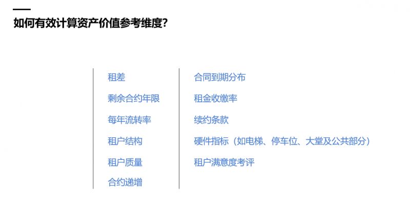 在这份参考标准中,租差、剩余合约年限、每年流转率虽然容易达标,但许多空间运营商的租户结构、租约分布、租户质量等都是有问题的,或者说大多不关注这些,还有硬件指标也是如此。项总以某商场为例,认为它的大堂过于简陋,电梯基本服务标准如果能再提升一下,租金应该是很容易涨上去的。