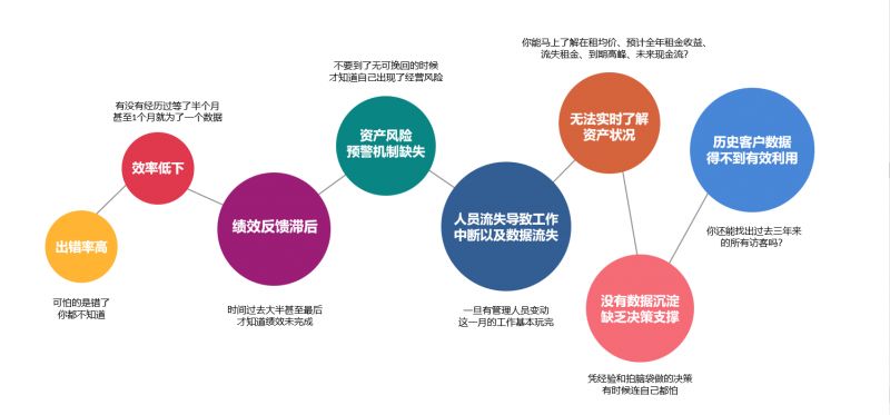 目前,存量市场里还有不少痛点,比如出错率高、效率低下、绩效反馈滞后、人员流失导致工作终端、历史客户数据得不到有效利用等。这些痛点跟空间运营者的管理能力存在差异导致的,却没有一套完整的体系来管理。