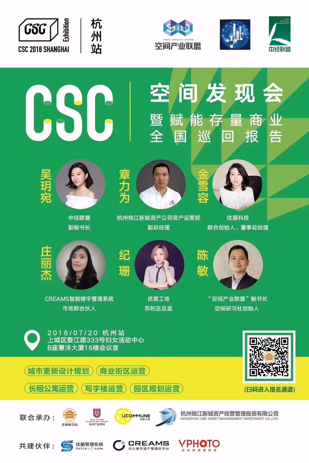 杭州钱江新城资产经营管理投资有限公司、空间研习社、空间产业学院、CREAMS、优客工场、优服科技等