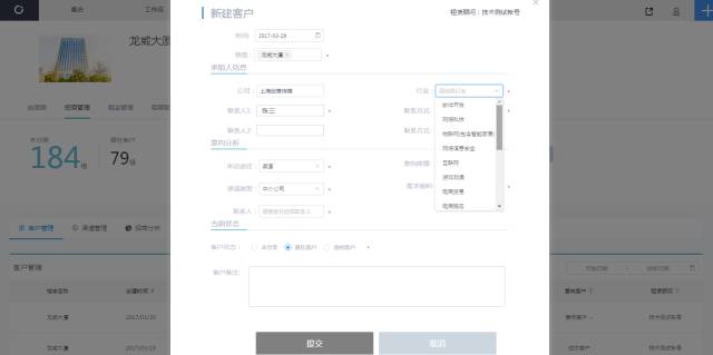 CREAMS客户管理对所有来访客户做了一个详细的记录,在新建客户的时候就可以对客户所属行业、来访途径进行分类,标记客户状态是潜在客户还是意向客户,同时招商管理客户行业分析功能会在1.9版本上线。