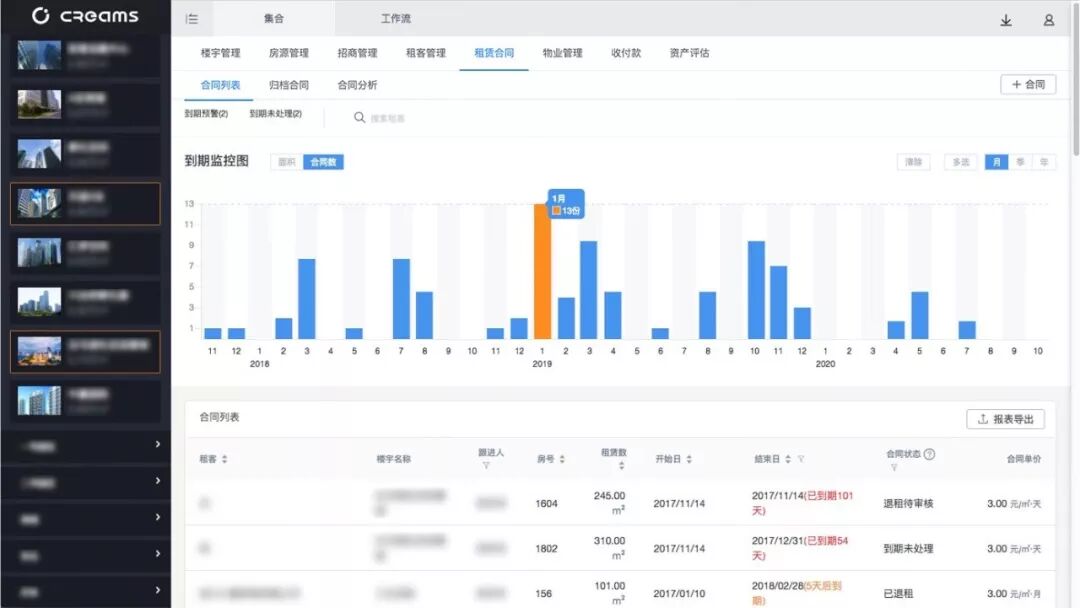 对于合同的管理项目方一般都是财务通过excel进行盘算,再通知相应的招商人员和客户沟通,是否要办理退租续租。而这种传统的流程很容易造成工作遗漏,比如没有及时跟进客户情况,等到想起来的时候,客户已经退租走人了。这样一来就会给房源就会产生空置期。