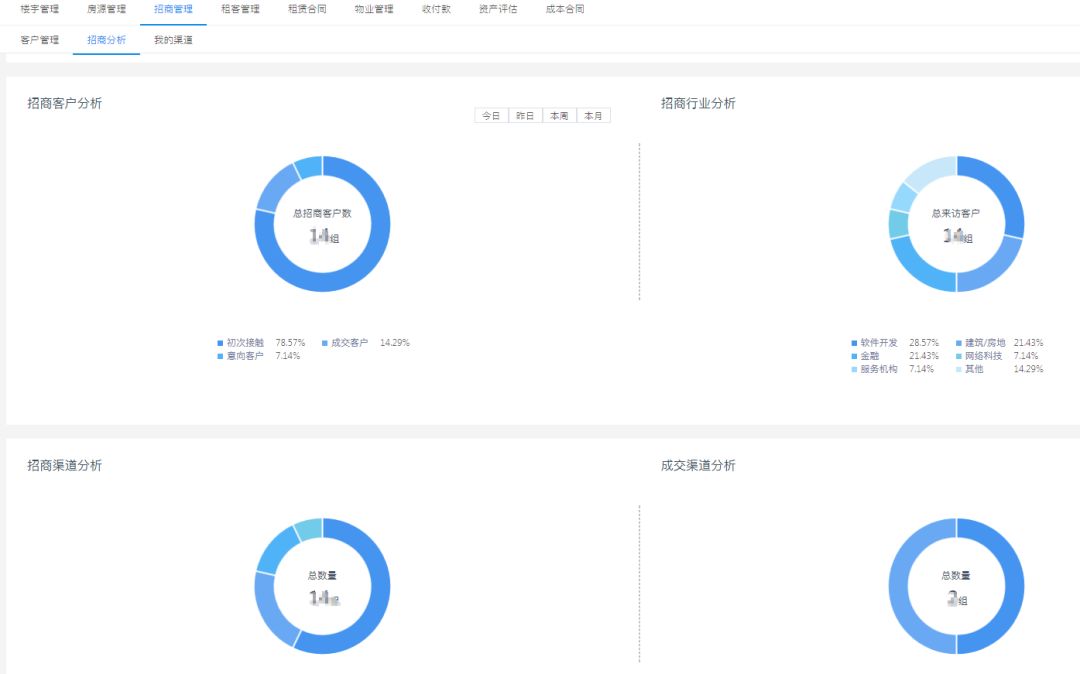 国际水务中心拥有雄厚的实力,在招商管理方面自然也胜人一筹。国际水务中心采用CREAMS进行园区管理,在CREAMS中有一个招商模块,将客户关系管理、招商渠道投放、客户行业分析等一系列运营系统性地统一结合起来。