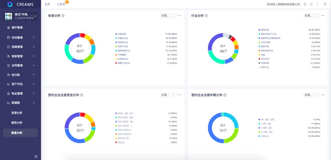 对在租客户进行标签化分类,以行业属性、注册资金、签约年限等数据为标准,便于资管者对项目的定位管理更加精准,细化招商目标类型。