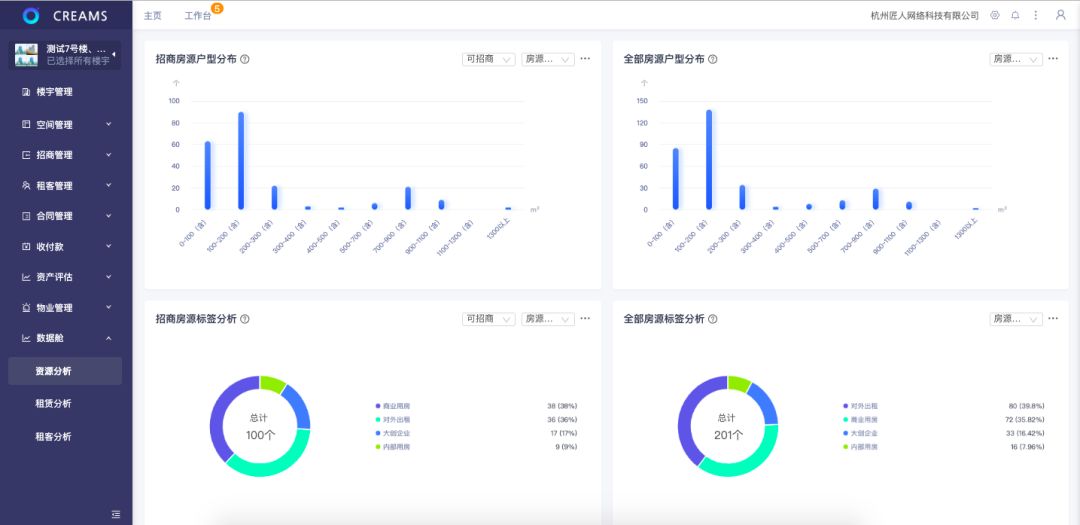 以图表形式清晰直观地展示项目内房源的户型分布、房源标签分类以及空置天数等,为制定招商计划、招商政策提供有力数据支持。