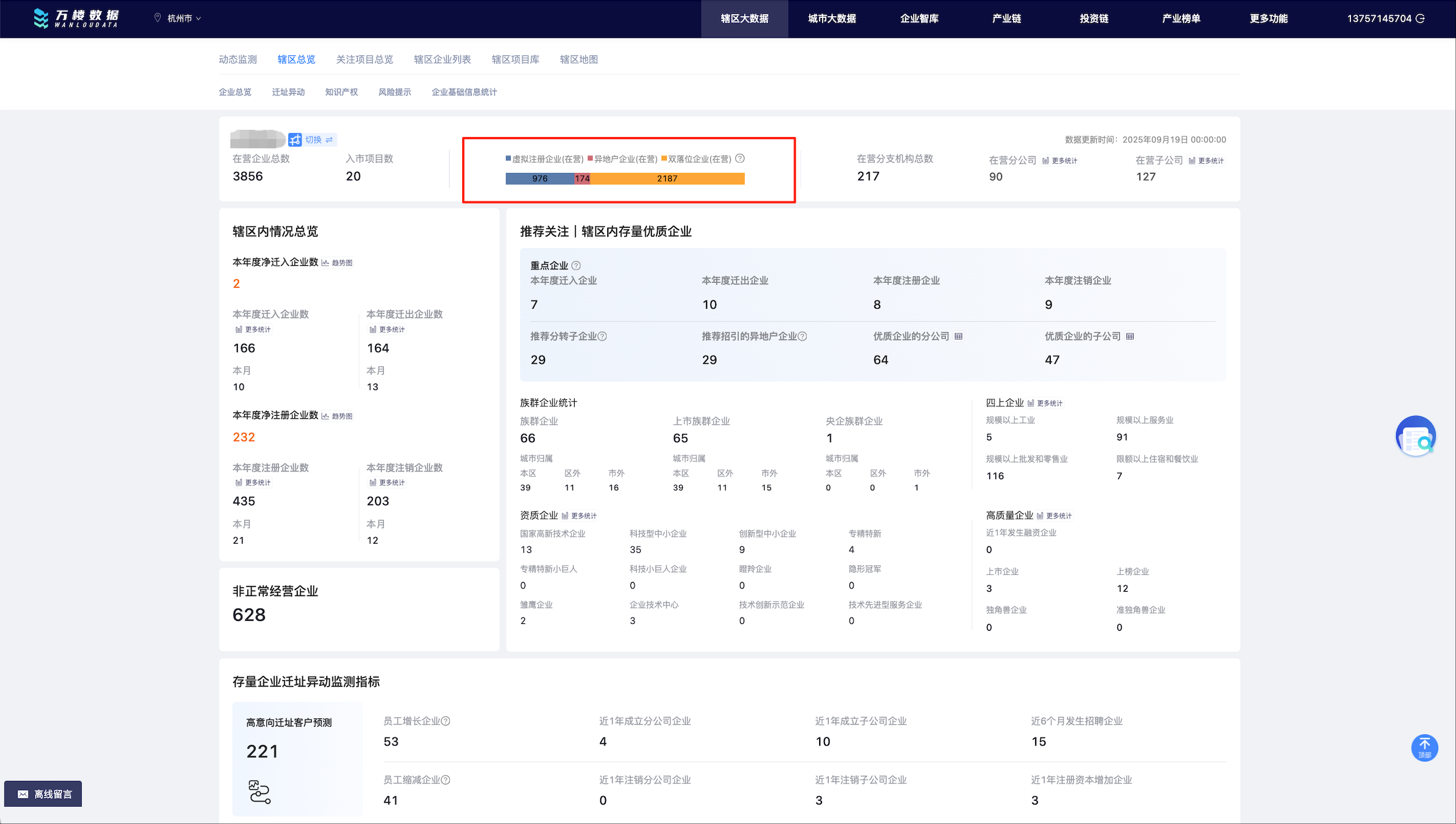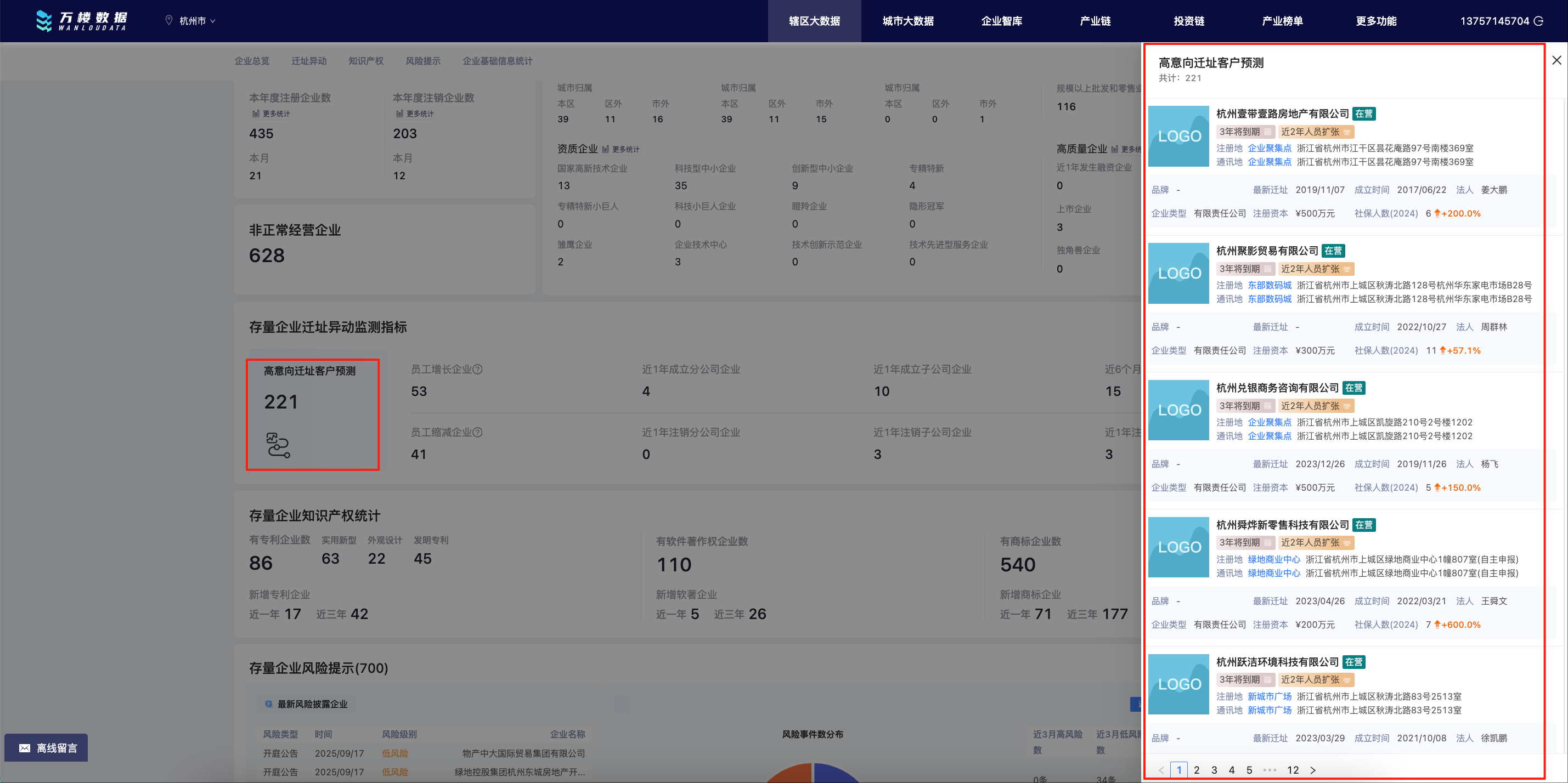 【动态监测,高亮预警】 :不再是简单的企业罗列。系统将迁入企业按来源自动分类,并对上市公司、高新技术、千万级注册资本等关键目标进行高亮标注,让“潜力股”一目了然。