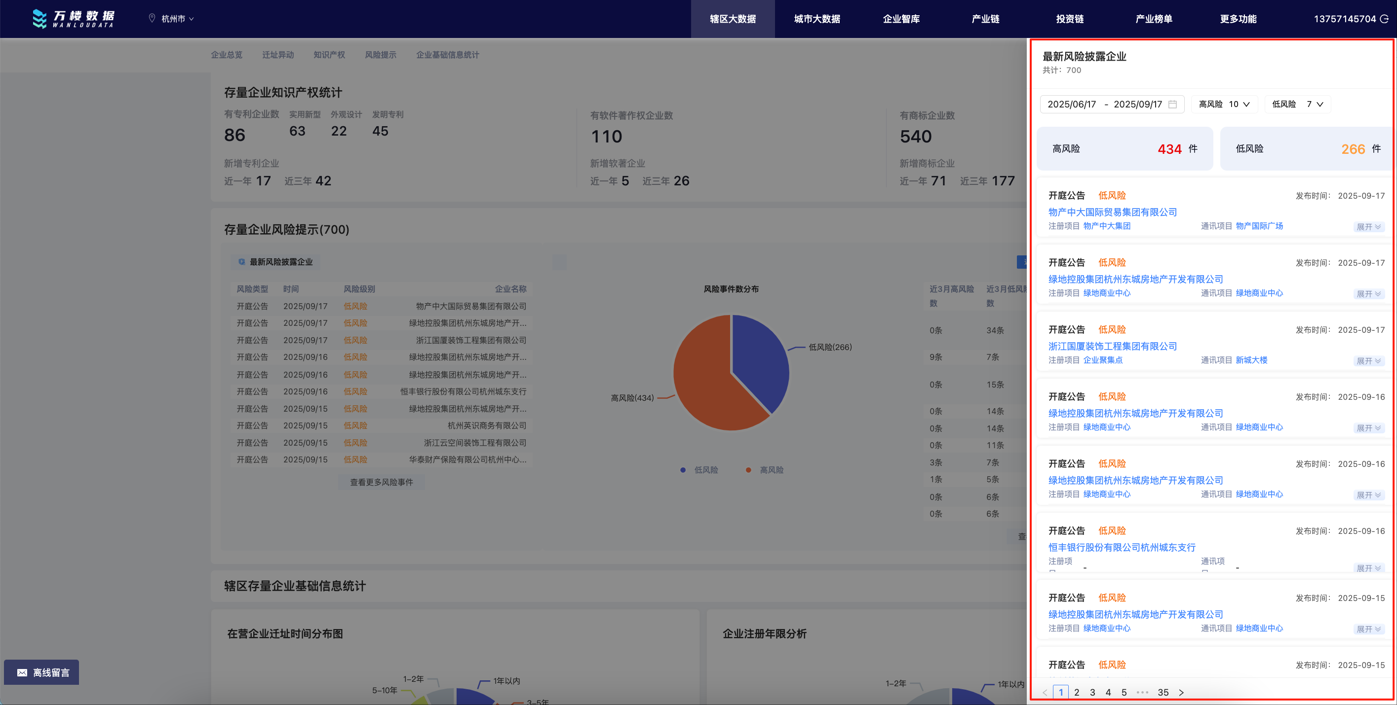 通过对辖区内企业各类行为的实时感知与多维度研判,万楼数据构建起覆盖企业全生命周期的事件跟踪与风险识别能力。