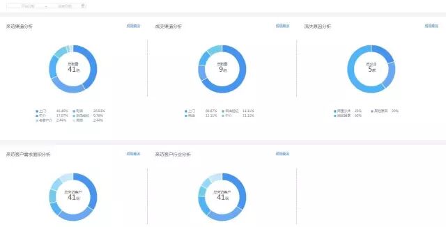 CREAMS想到了这一点,通过后台数据集成,将客户来访渠道、成交渠道、流失原因、客户行业及需求占比统统生成可视化图表,简单直观,便于招商人员得出结论,指引接下来的工作方向。