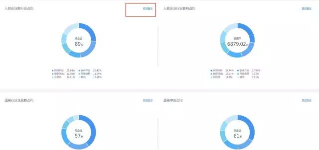 CREAMS统计分析功能,提供一系列运营数据,形成可视化图表,通过对项目内入驻企业数的行业及面积占比,可以判断出这个项目的入驻企业以哪些类型为主,这样可以有针对性地开展一系列资源对接和沙龙活动,也是增强客户黏性的重要前提,有利于打造出有口皆碑的优质型楼宇。
