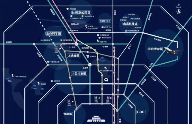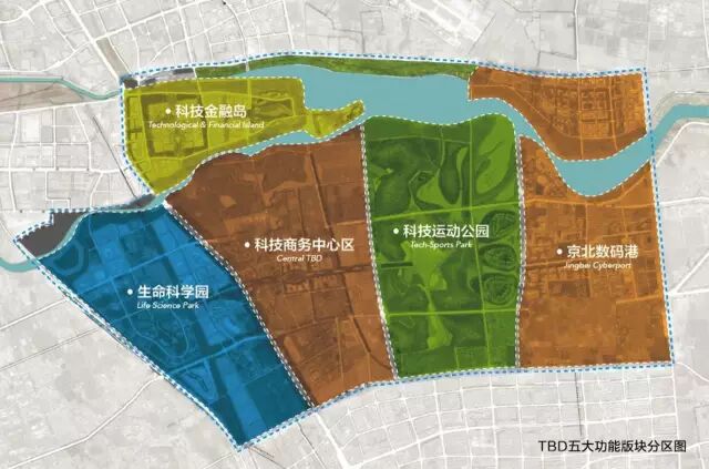 1000公顷生命科学园、1100公顷科技商务中心区、460公顷科技金融岛、800公顷科技运动公园、1150公顷京北数码港