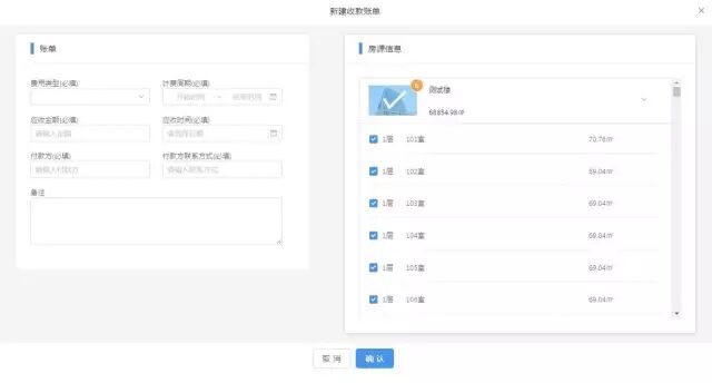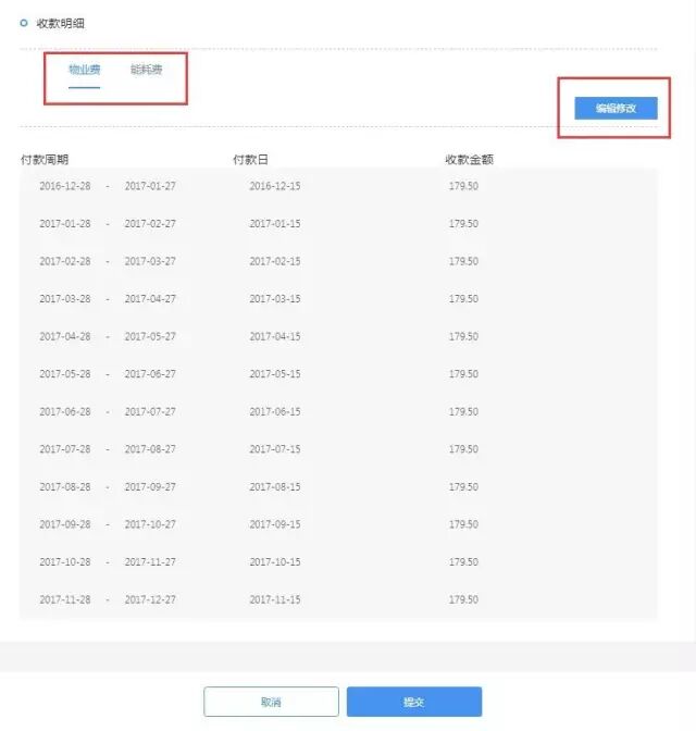 尤其是在“物业信息”一栏中,填好签约年限、物业费单价、能耗费、付款周期等关键词,系统即自动生成收款明细,形成一份账单,并可以根据实际需求手动编辑修改,费用一目了然。