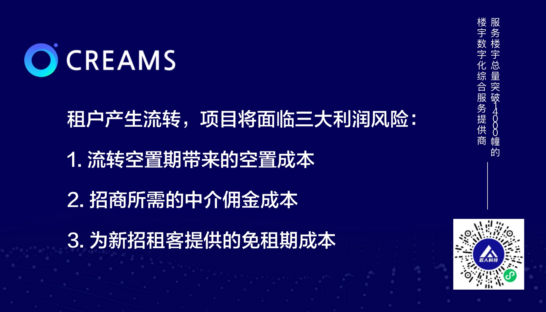 我们认为,真正重构数字化,并不是上一个系统,匠人科技也不想成为一个卖软件的公司。我们希望成为楼宇项目并肩前行的伙伴,真真实实把信息化、数字化和业务经营管理融合在一起,实现“系统即经营,经营即系统”的产品初心。